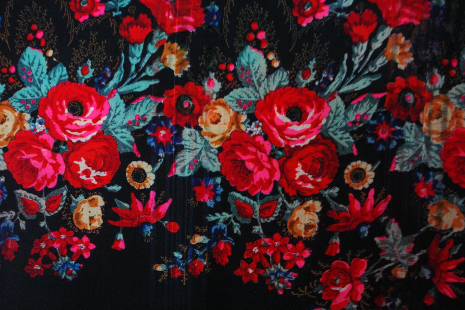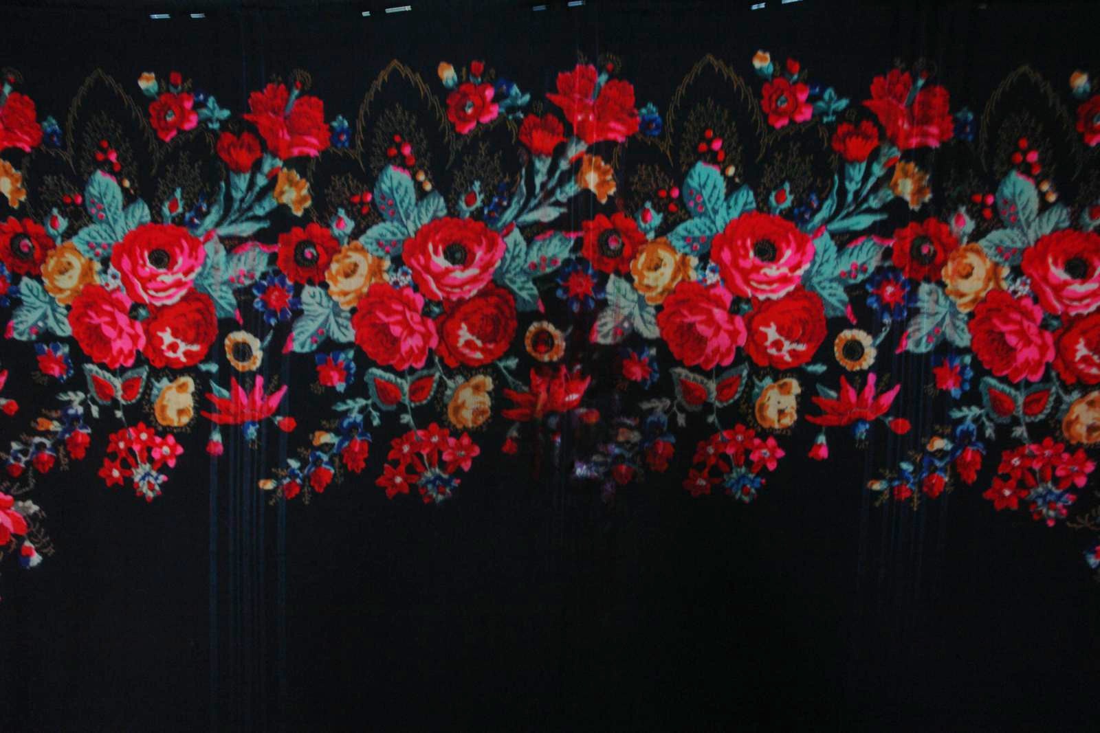 Шаль старинная (старопавловская) с декоративной каймой с элементами в форме листьев, выполненных способом (методом?) вытравки.