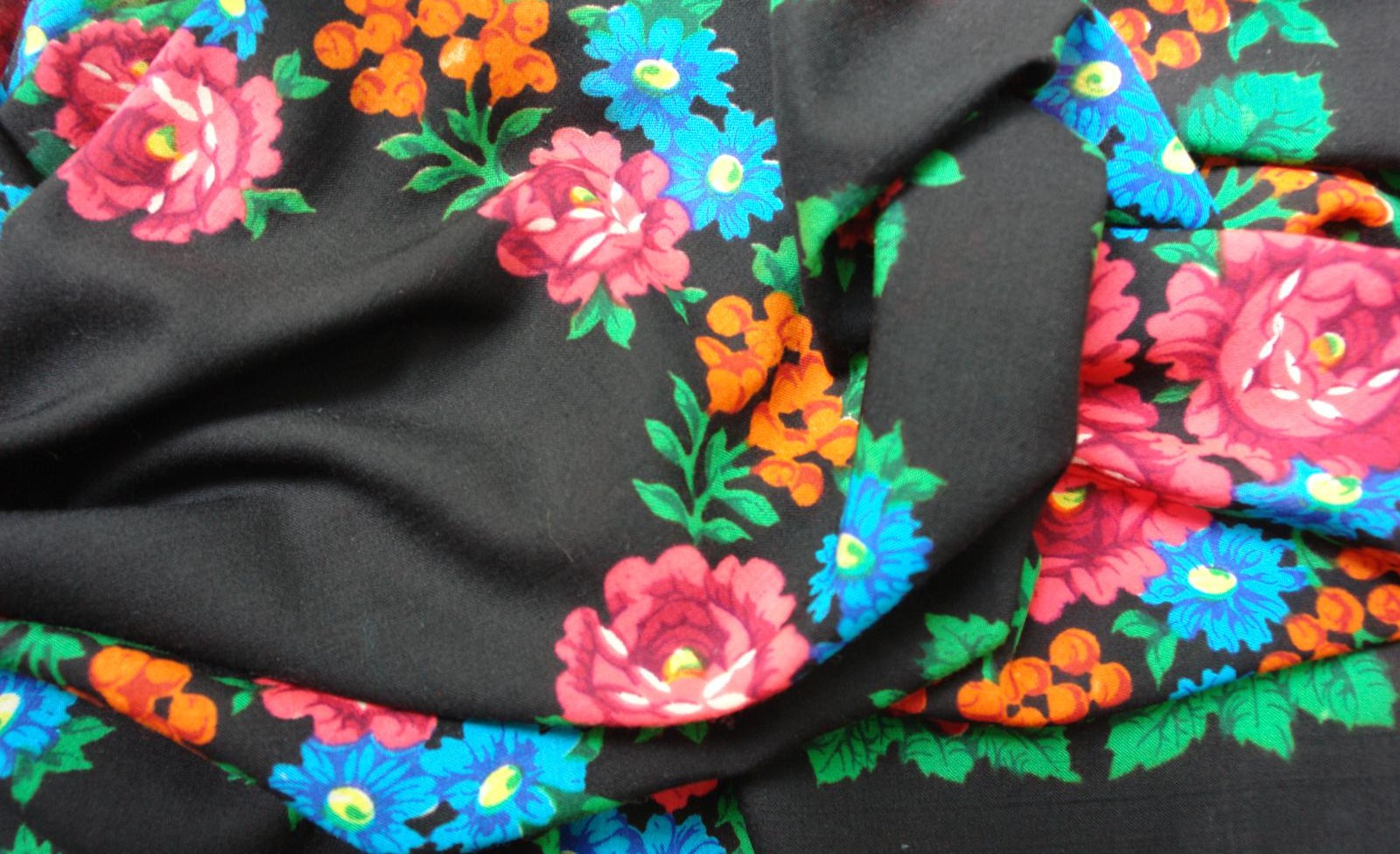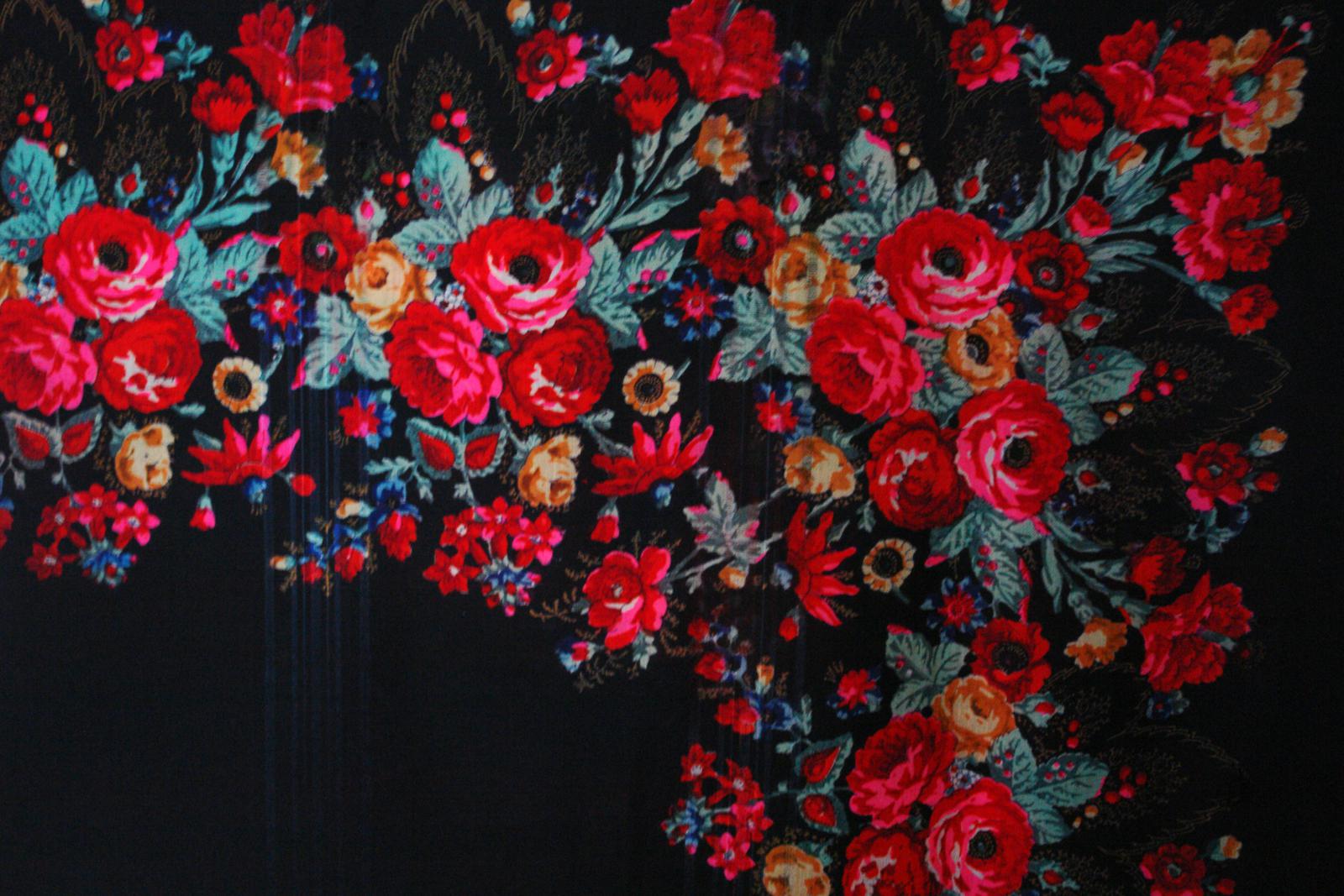 Шаль старинная (старопавловская) с декоративной каймой с элементами в форме листьев, выполненных способом (методом?) вытравки.