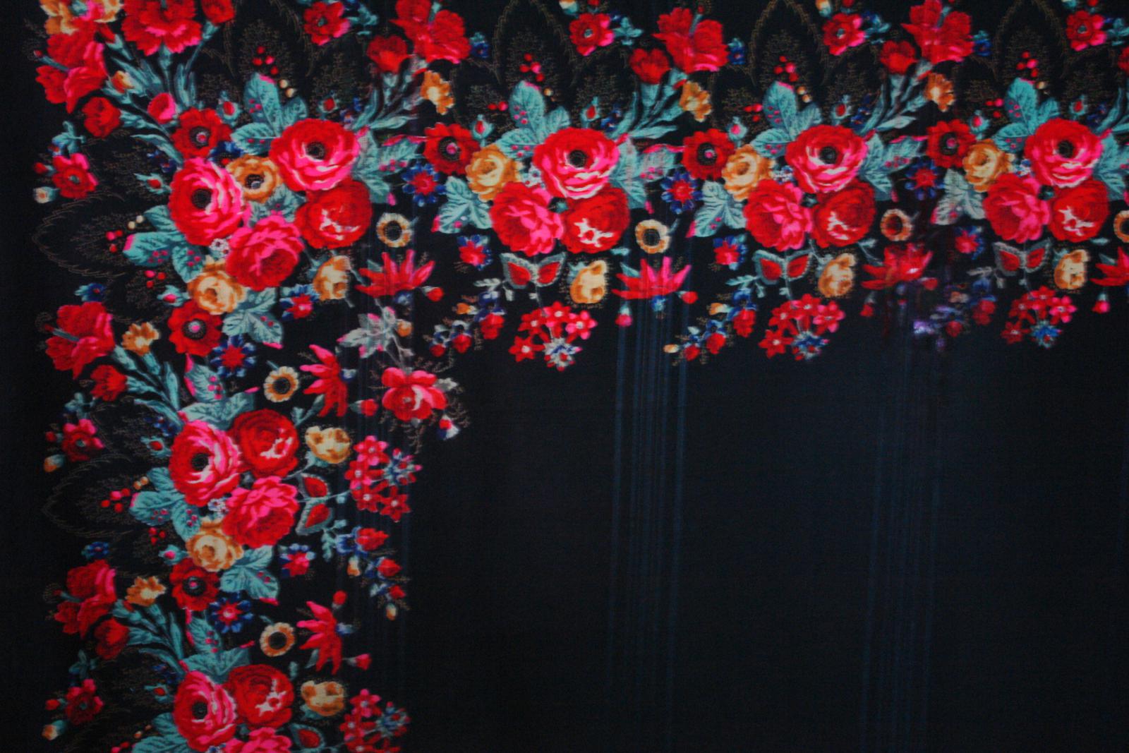 Шаль старинная (старопавловская) с декоративной каймой с элементами в форме листьев, выполненных способом (методом?) вытравки.