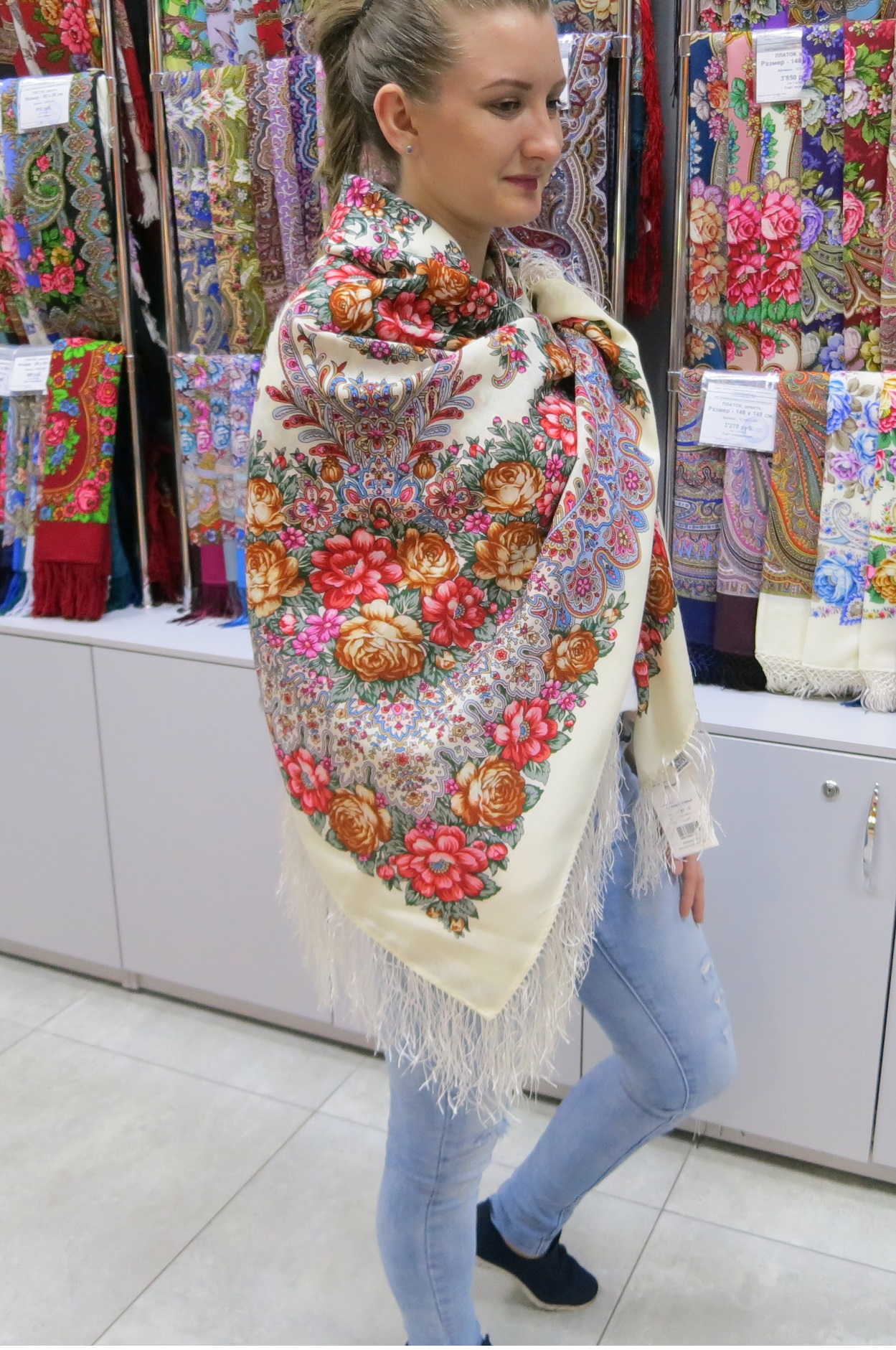 В очередной раз посетила мой любимый магазин.Приходила засвидетельствовать свое почтение "цыганке Азе 23,но хотелось бы еще на 18ю глянуть.Будем ждать поступления всего табора.."Представлю одно фото "Ладоги 0",тк в базе его мало.А он заслуживает внимания.Очарована этим платком во всех колоритах!На фото чудесная девушка, продавец.