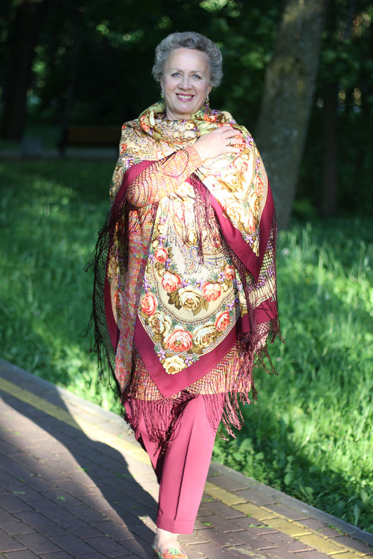 Демонстрируем ношение платков и шалей.