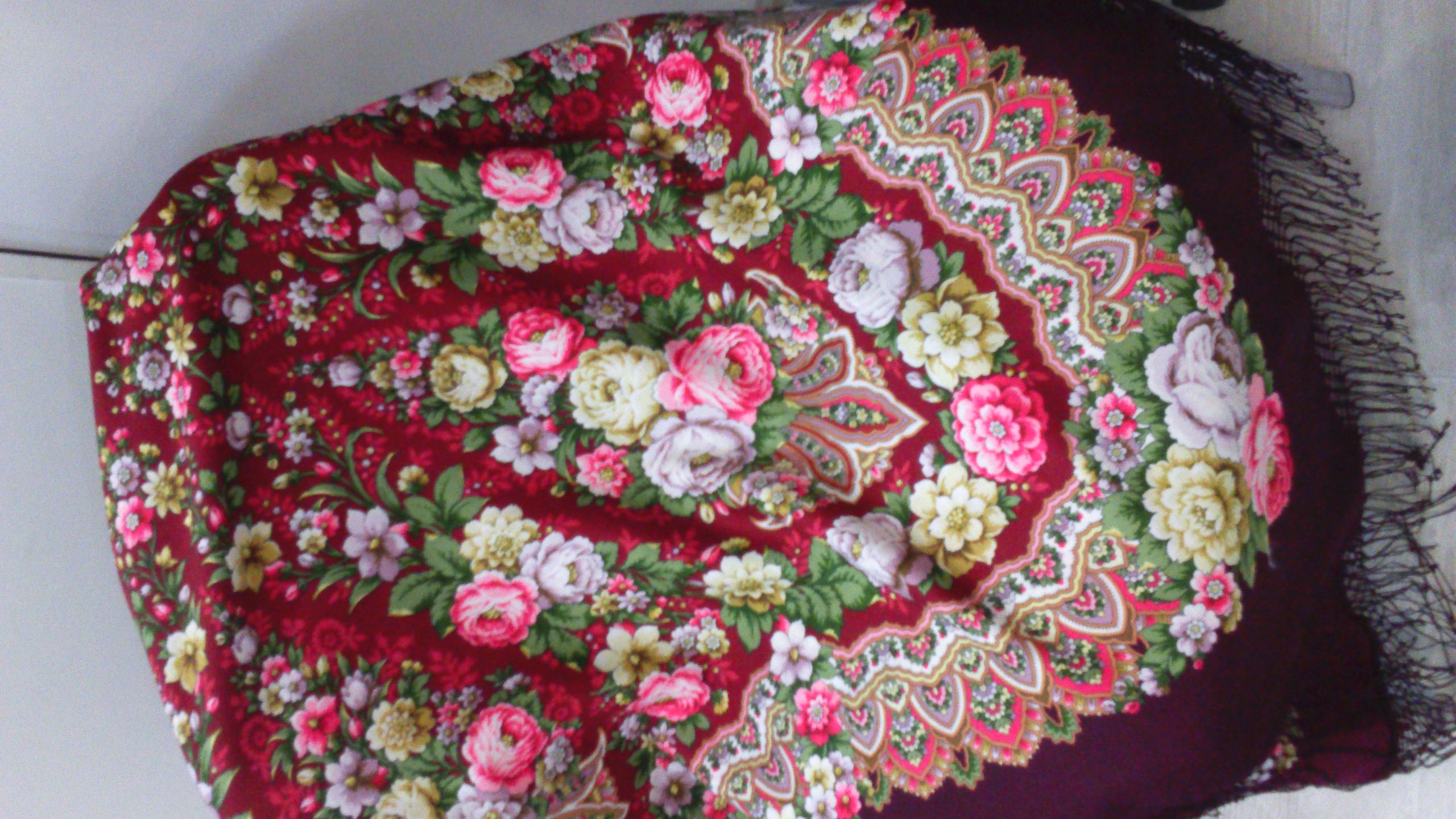 Примерила Желанную 7. Цвет - Винная ягода. Кайма темнее средника. Очень понравился. Но цветов бы поменьше интересного орнамента побольше.