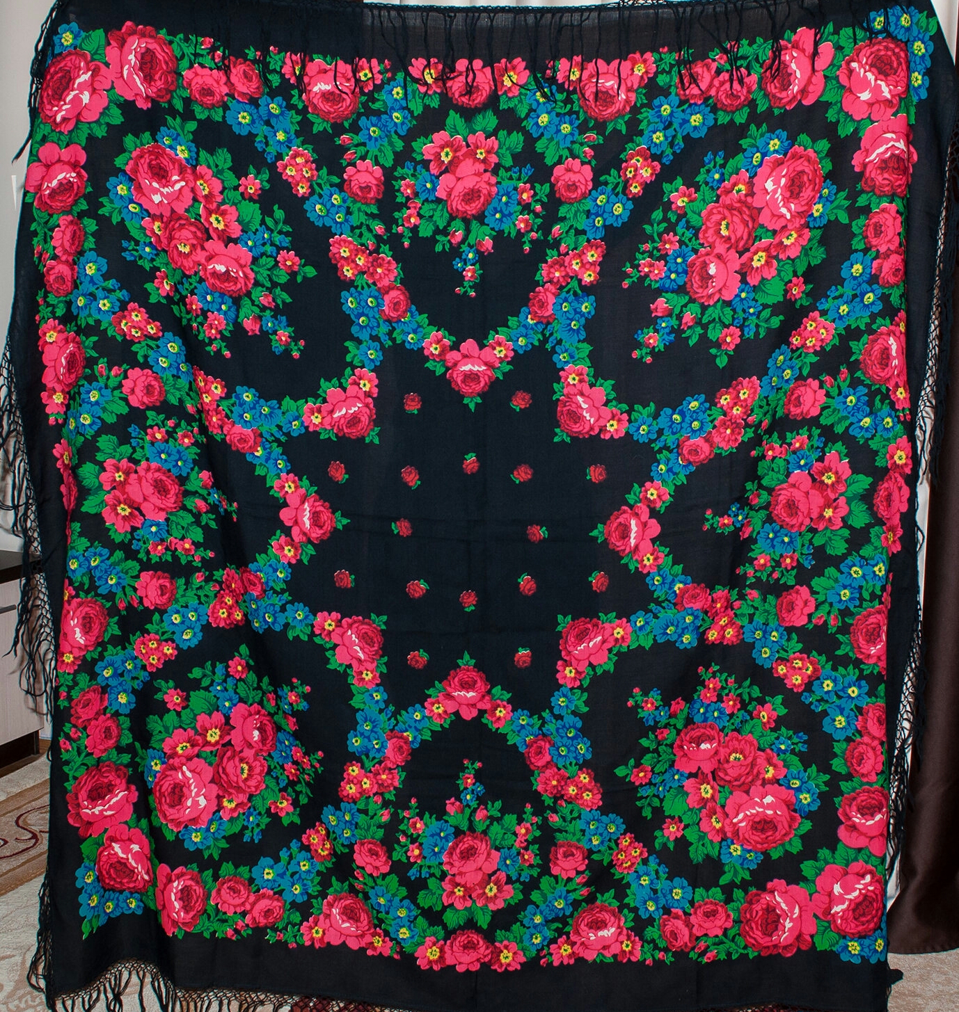 Размер 142 х 134, бахрома 14