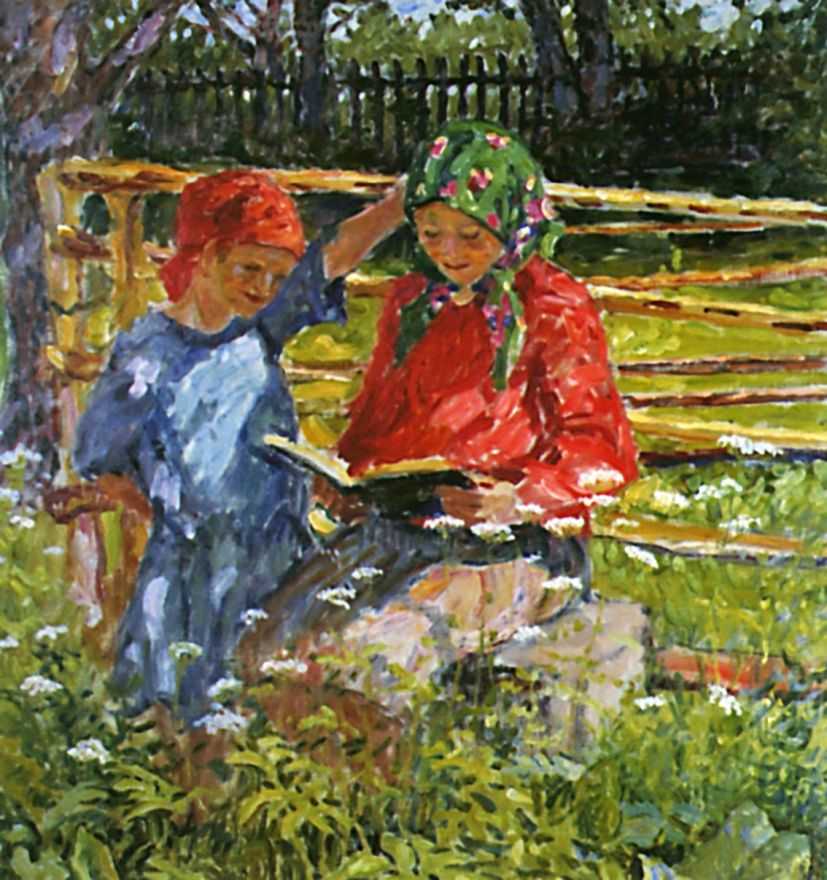 …В творчестве каждого знаменитого художника среди множества тем всегда можно выделить ту, которая более всего волновала, была самой близкой его душе. Так было и у Николая Петровича Богданова-Бельского. Даже передвижнический период, поставивший его в один ряд с самыми известными художниками России, преломился в сознании живописца особым образом. Нет в его работах привычного "бичевания пороков", присущего критическому реализму, - движущей силы раннего передвижничества, нет сарказма и назидания. Есть светлая любовь к крестьянским детям. Взять хотя бы картину Горе (1909). Умерла жена, нет больше матери у детей. Отец в отчаянии. Что ждет их, сирот? Это и волнует художника, больно отзывается в его сердце.