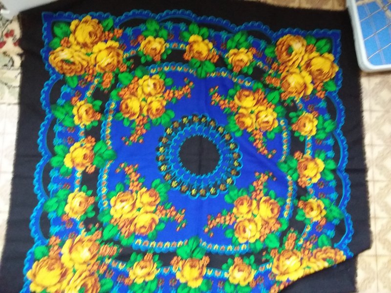 Добрый день! Хотелось бы получить информацию по платочку,найденному в старых маминых вещах..он хлопчатобумажный,по краям обрезанный(нет каймы),размер 65*65 см.Набивка ручная...Даже не знаю Павловопосадский он или нет...Рисунок показался интересным...