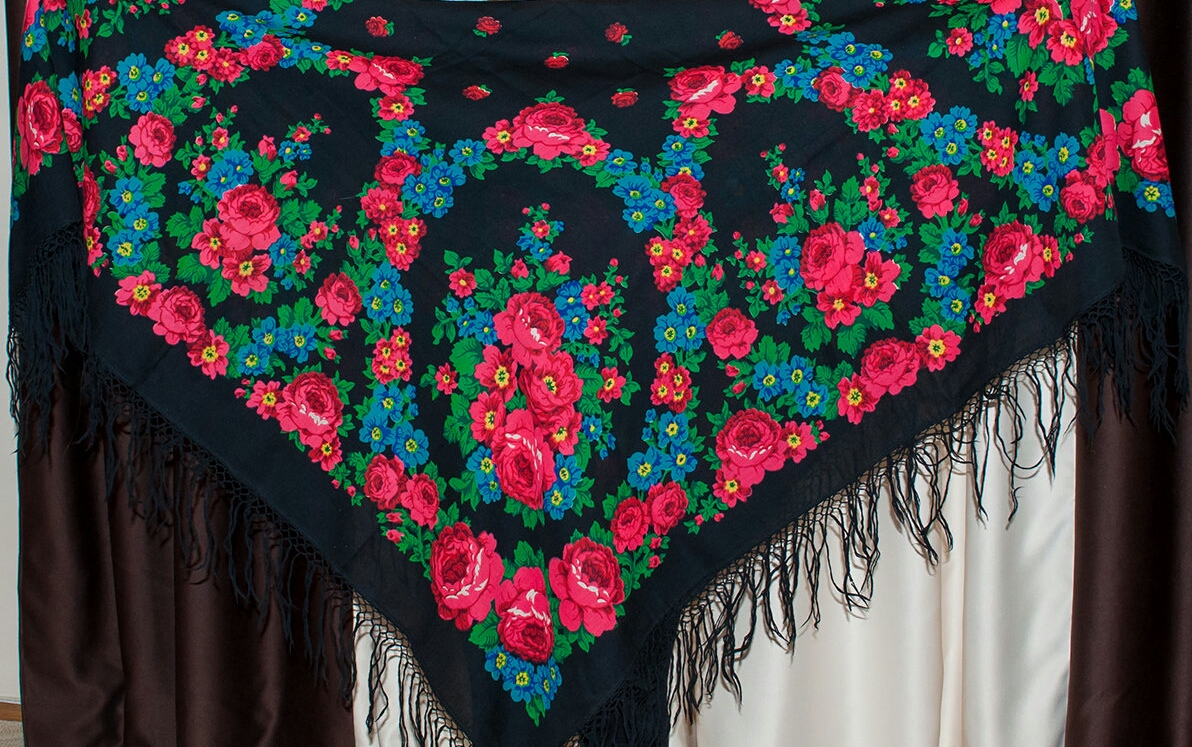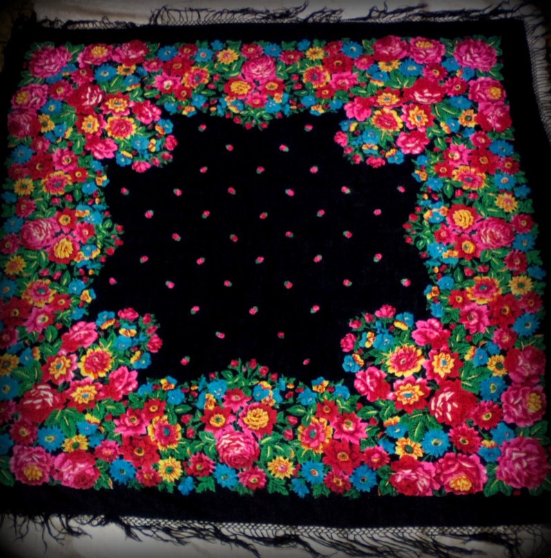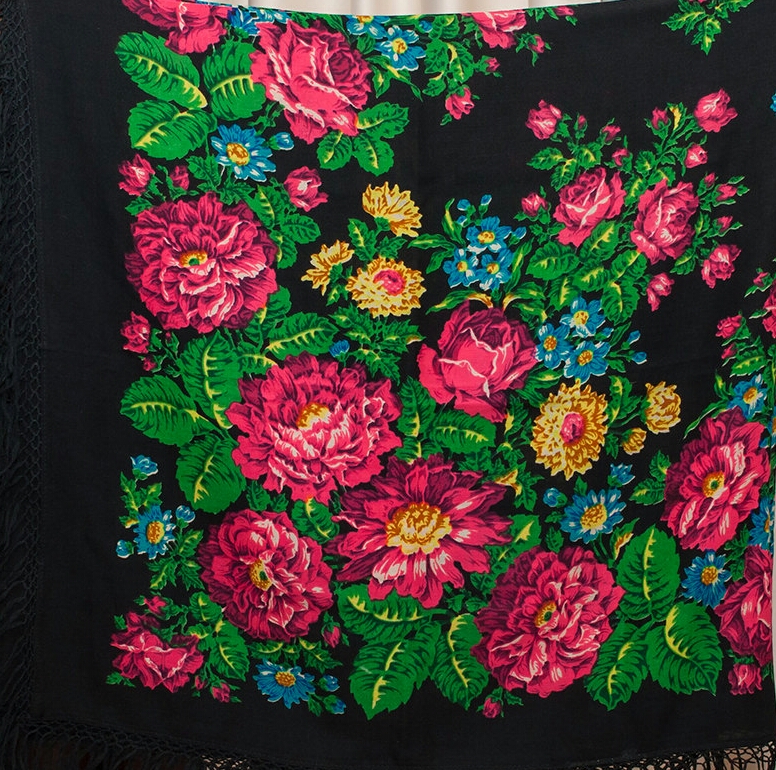Фотография фрагмента шали аналогичного рисунка в тёплом колорите