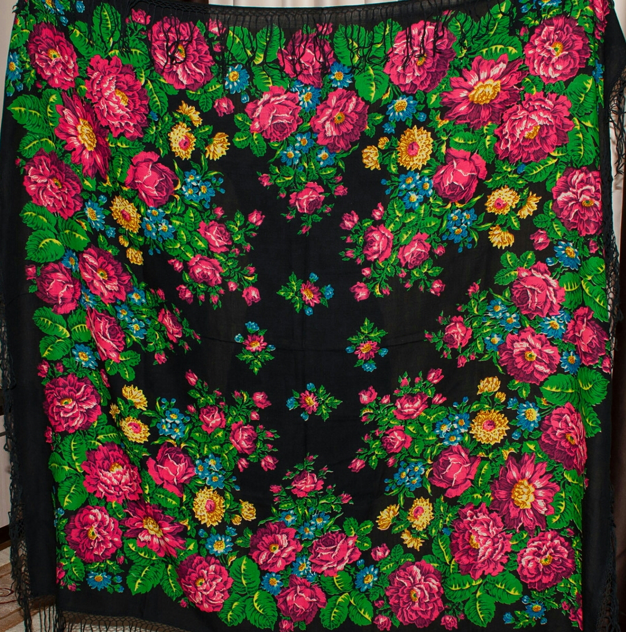 Размер 142 х 134, бахрома 14