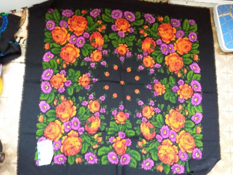 Добрый день! Хотелось бы получить информацию по платочку,найденному в старых маминых вещах..он хлопчатобумажный,по краям обрезанный(нет каймы),размер 65*65 см.Набивка ручная...Даже не знаю Павловопосадский он или нет...Рисунок показался интересным...