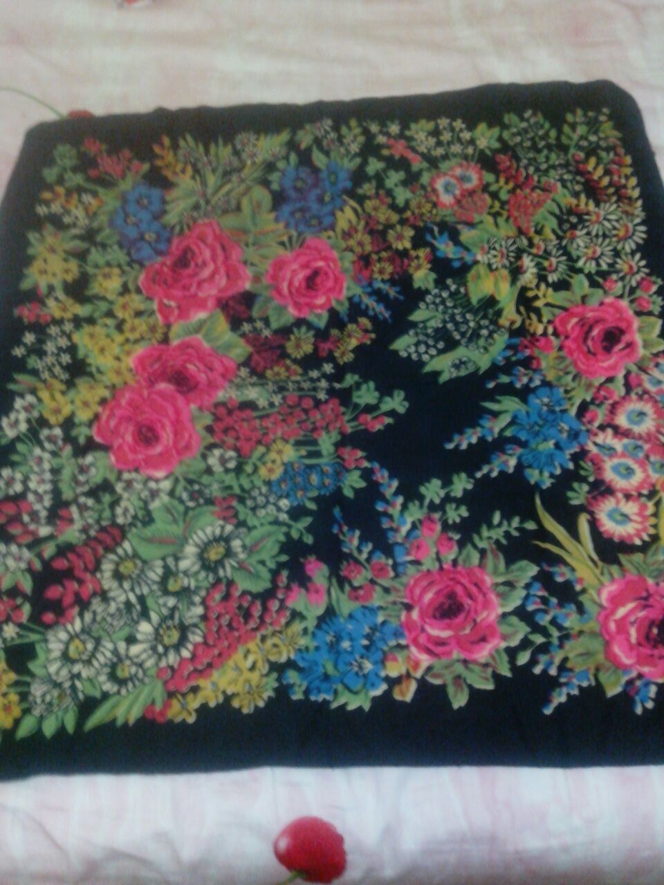 Добрый день! Хотелось бы получить информацию по платочку,найденному в старых маминых вещах..он хлопчатобумажный,по краям обрезанный(нет каймы),размер 65*65 см.Набивка ручная...Даже не знаю Павловопосадский он или нет...Рисунок показался интересным...