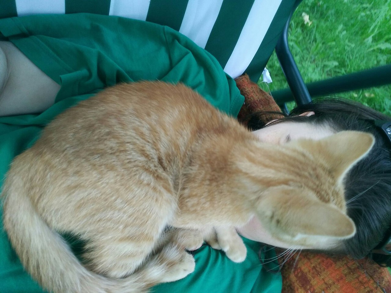Дочка моя Сашка приехала сегодня, привезла в телефоне отснятый материал. Обязательно сбросит, когда отдохнёт. У неё диабет первого типа, а сегодня жара. Она немножко умирает после дороги. Там будут все, и рыжий котик, и Микси мейнкуниха у папы на ручках и рыжая собака.
