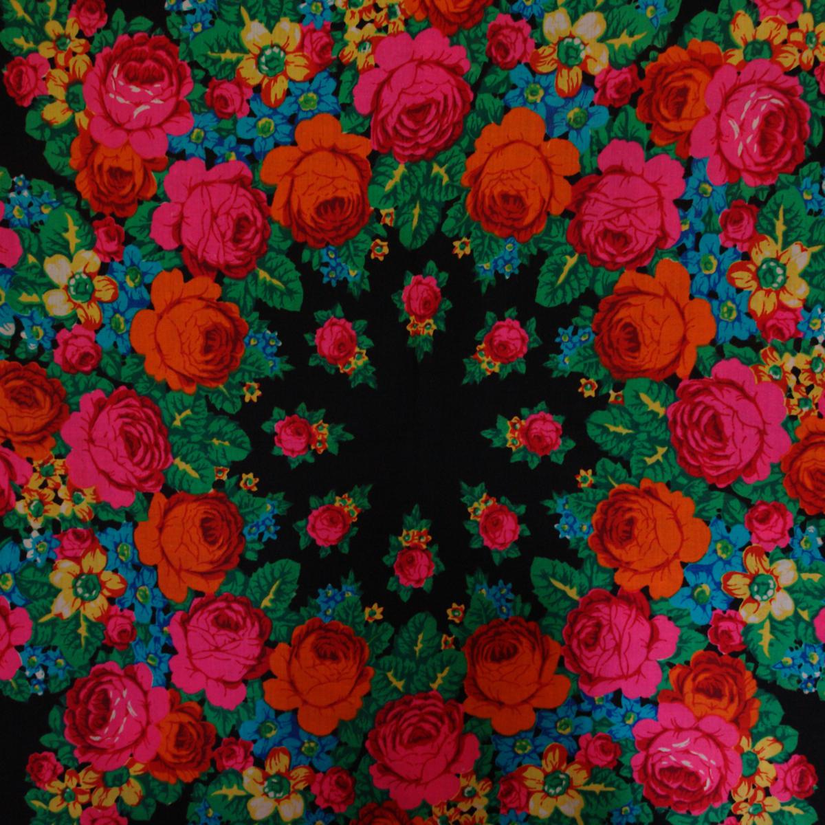 Ещё одна шаль с популярным, возможно, довоенным павловопосадским цветочным мотивом, представленным на форуме двумя видами печати. В нашем БС оба вида пока собраны под одним кодом ППБ_29 (есть желание разложить рисунки по двум позициям, подумаю над этим. Если есть мнения в поддержку, с удовольствием прислушаюсь :) ). В моей коллекции представлен экземпляр ручной набойки на тёмно-малиновом грунте, предположительно, 50-х годов. Как-нибудь и его сфотографирую "на паспорт".