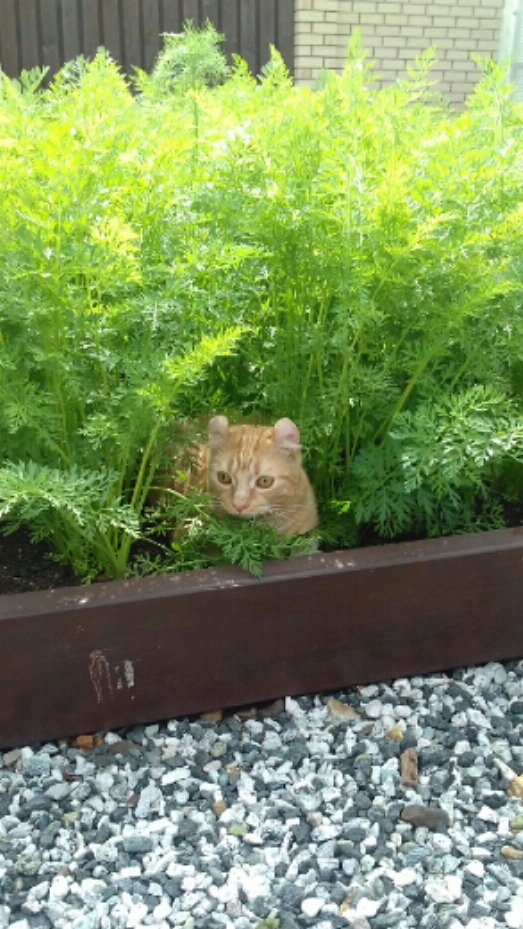 А он в морковке аккуратно так между рядочков улегся, отдыхает