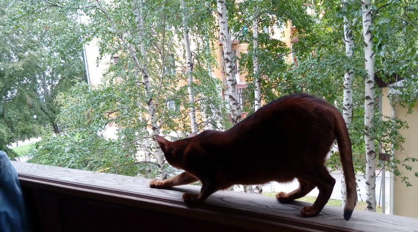 На балкон очень боюсь выпускать, хоть и не так высоко, как в городе. Мой любитель-птицелов, обожает ловить птиц, и делает это успешно. Только когда бросается за птицей, плохо думает, где находится. Может и полететь, запросто. Семь кило распределены неравномерно, падать тоже будет задом вниз строго вертикально.