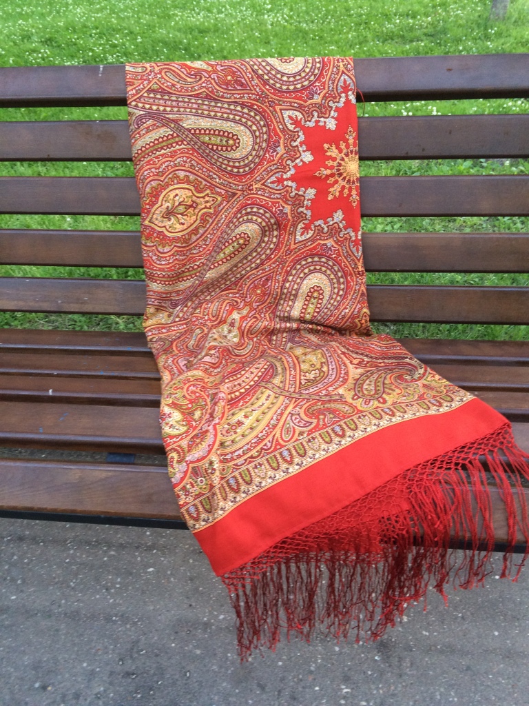 Передала дочери Нежное сердце 1752-9 Юлии Уткиной, которая умудрилась даже сделать несколько снимков с новинкой и еще парочкой платочков из стареньких, их я и представляю. Можно повздыхать, конечно, что подавляющее большинство очень интересных и красивых мест осталось за кадром, но даже и эти немногие, сделанные впопыхах на бегу фото – из области фантастики, ибо в такой компании, скажем прямо, не до платочков.