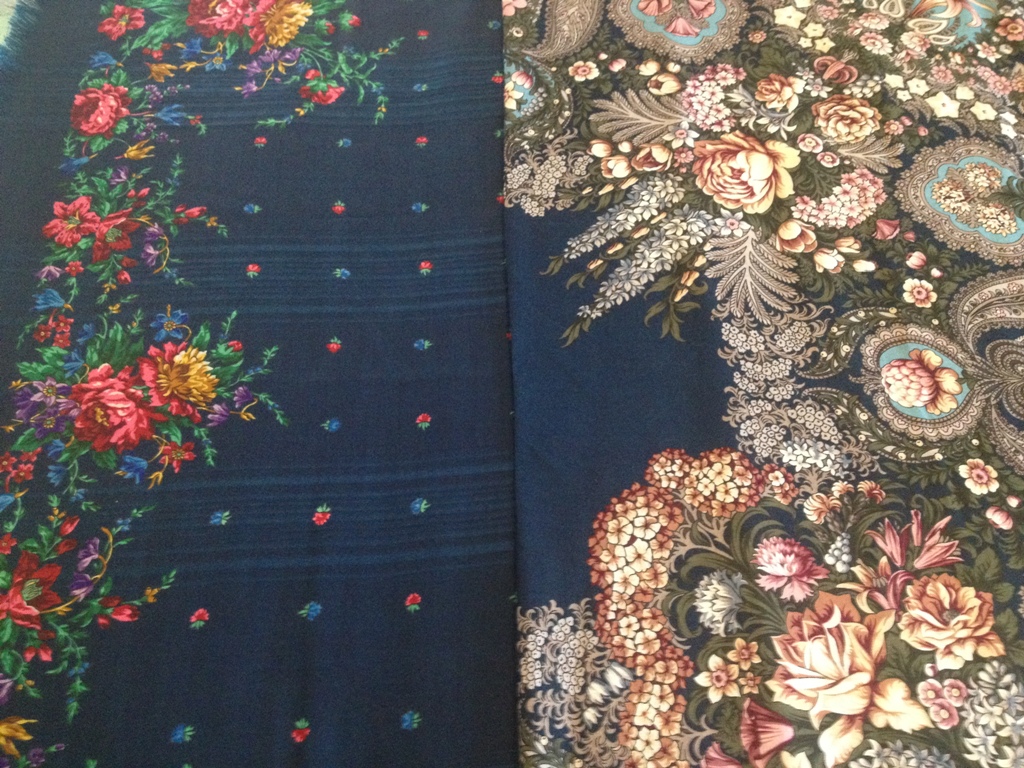 Понятно, что платок и шаль не сопоставимы по качеству ткани, но цвета очень близки