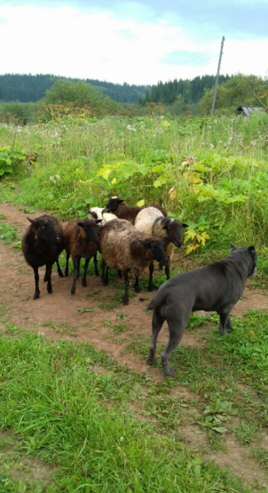 Я ласковым голосом объясняю Борзу, что это овечки, и не надо их трогать.