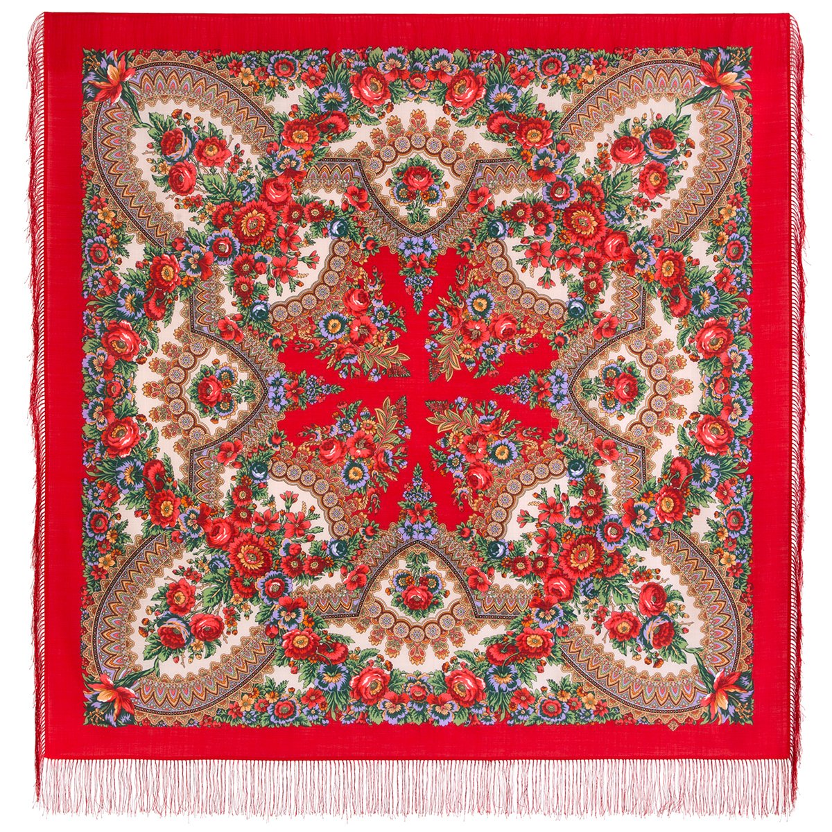 Шаль с традиционным цветочным мотивом "кайма из роз"