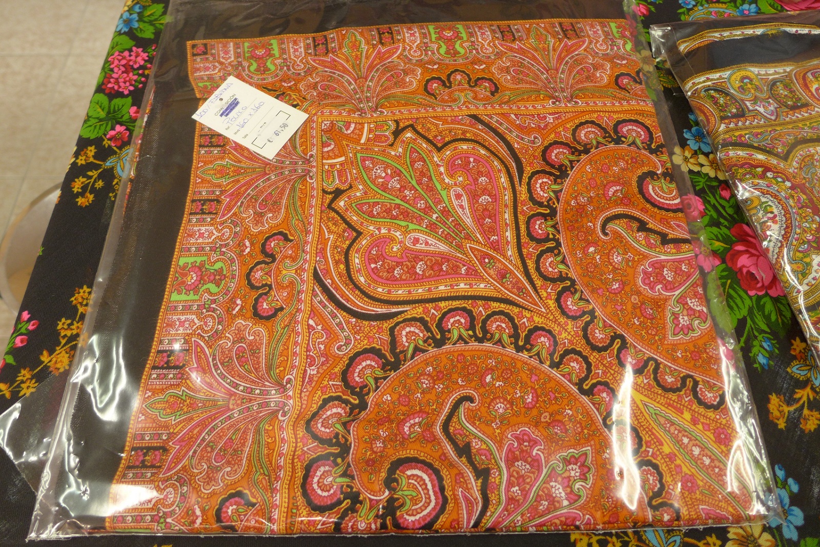 А вот эти платки называют польскими, на этикетке видно "polaco". Не шерсть. Доставать из пакета не стала, хотя любезно предлагали: