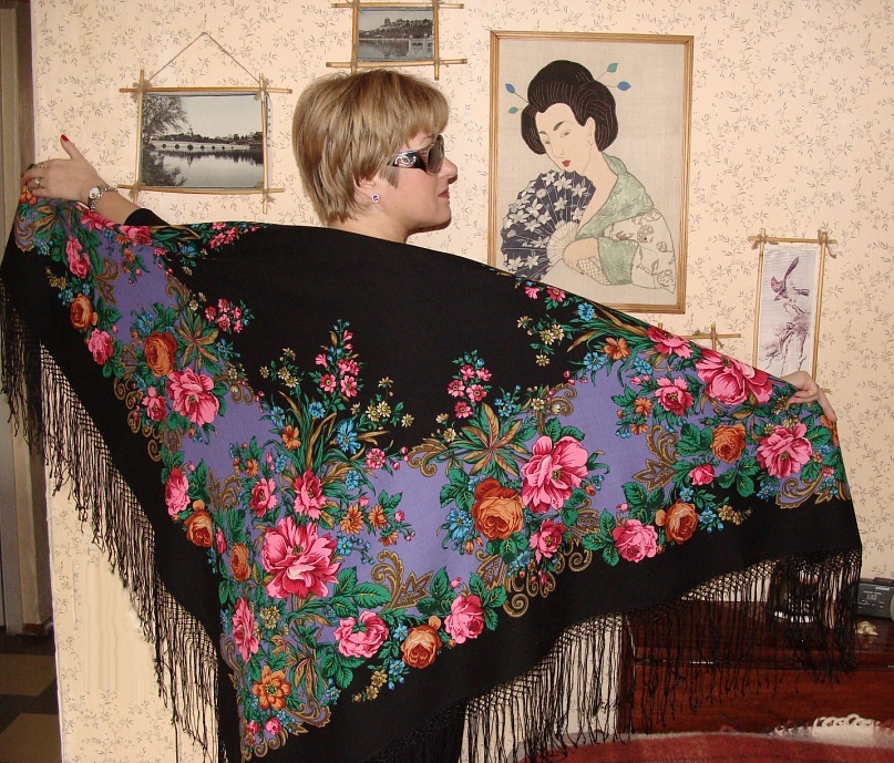 :!: А еще я видела Вареньку расцветки, которой не было в каталоге - темно-коричневая кайма, светлый бежево-песочный фон, цветы более темно-бежевые и синеватые, как показалось. Целиком не смогла рассмотреть, поскольку "носительница" платка свернула в соседний дом, остановить ее я не успела. Но то, что это была Варенька, я уверена. Буду ждать других колоритов, черный дочь отняла, только взглянув на него. ^V^ :)
