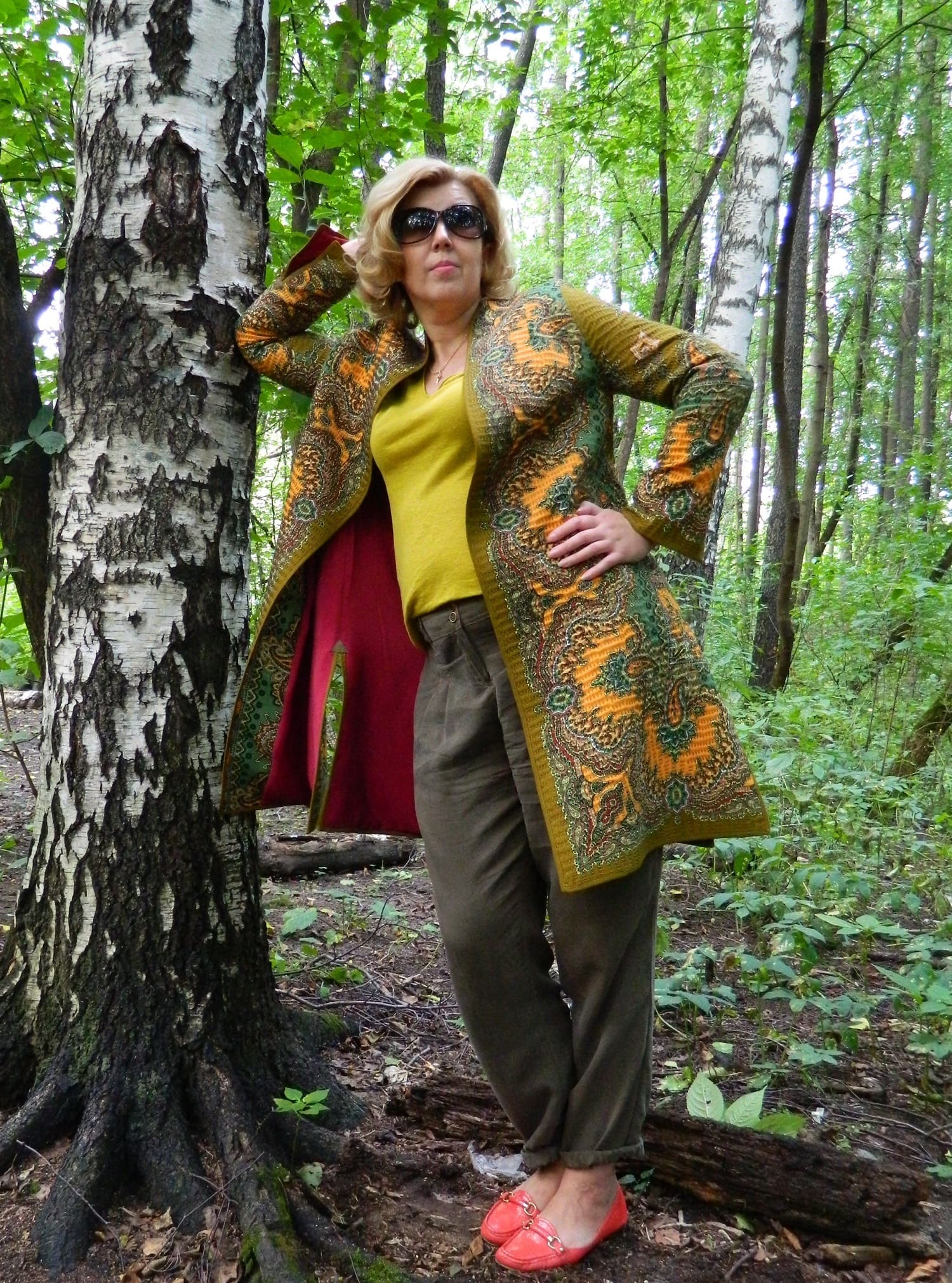 Давно хотела сшить себе стеганый кафтан (видела однажды такой из х/б ткани), но долго не могла найти подходящую ткань, мне хотелось купон или орнаментальную кайму… И даже когда чуть больше года назад я увлеклась ППП, не сразу сообразила, что они идеально подходят для моей задумки. Торкнуло меня, когда в магазине Платочной Феи я увидела лоскуты Шмидтовского 10, картинка сложилась, цвет, орнамент, нитки для стежки (бобина которых больше 20-ти лет пылилась в кладовке), винтажный шелк на подкладку…