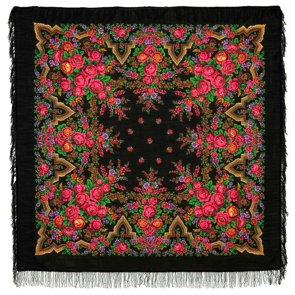 Шаль 150х150, 146х146 с популярным орнаментально-цветочным узором с "луковками"