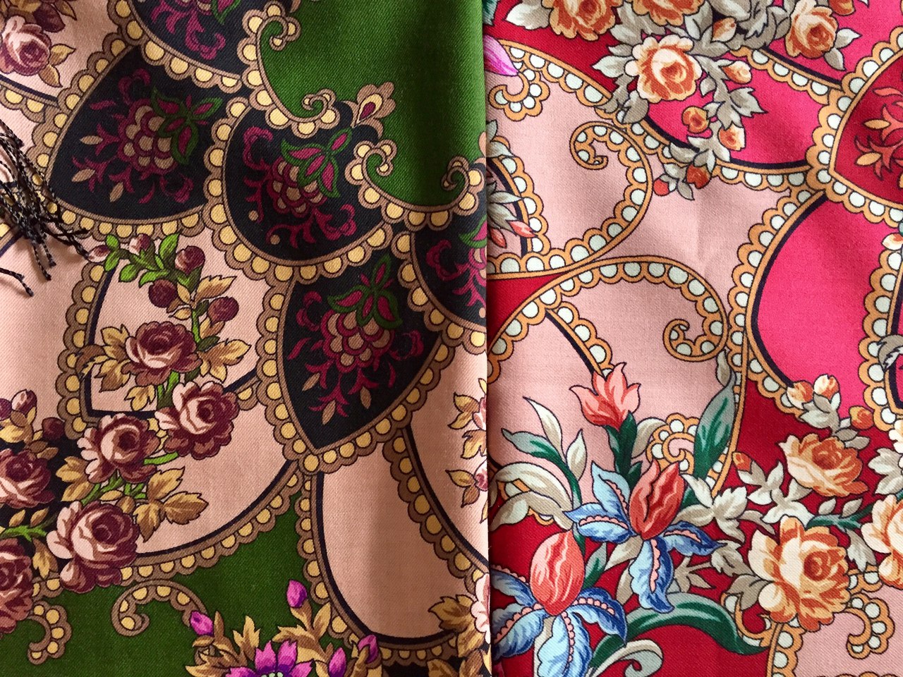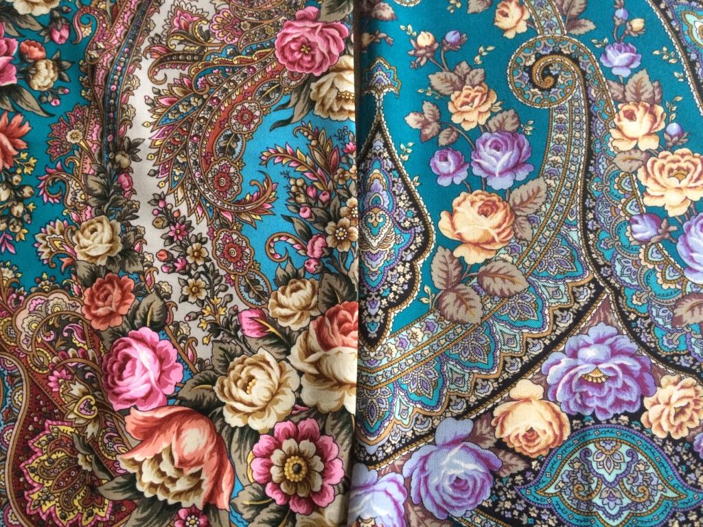 Просто в хлопке платок воспринимается по-другому, совсем, мне очень нравится в хлопке, но, как другой рисунок, а середина вообще мелкие букеты заменили одинокие цветочки.