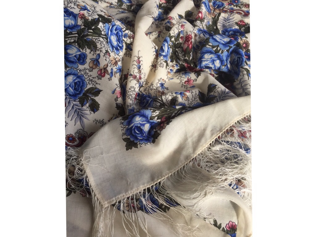 Эта синяя Гжель и Караван словно два хрустальных ручейка. Такие ясные и звонкие платки, всё же как звенит голубой и синий на белоземельном фоне