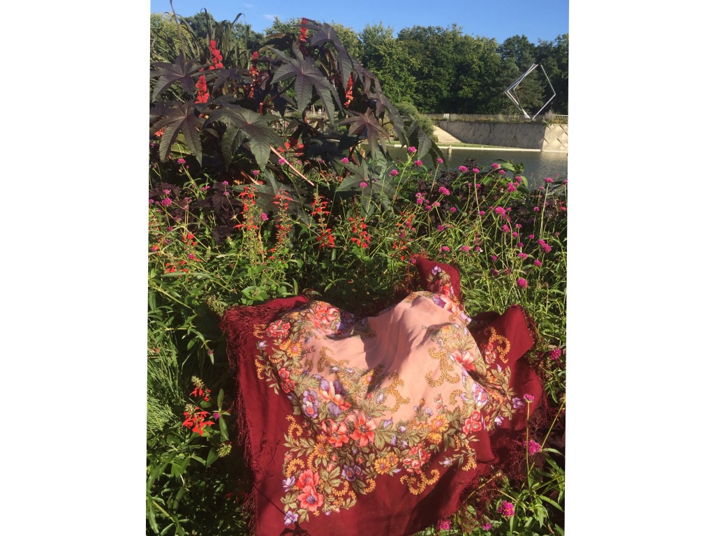 Цветы и цвет платка такие же , как в действительности.(Айфон)