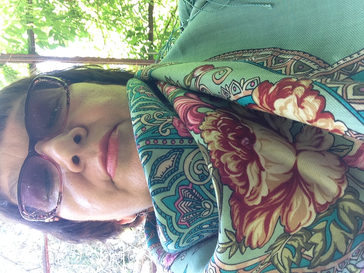Нина Александровна, это не попытка совместить принты, а красивое, уверенное совмещение, точное по попаданию цвета и стиля рисунков, плавности и размера линий. Прекрасно! И очень хорошо, что платье бледнее, чем шаль. Рисунок элегантного платья не лезет вперёд, не спорит, а шаль в этом наряде красивый доминирующий элемент. И всё это вам очень идёт.