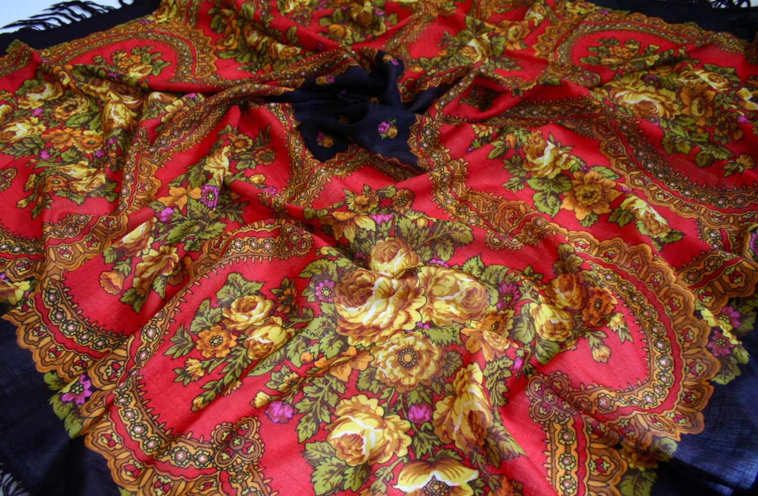 «У меня он поначалу «Cлавянкой» назывался, – говорит Ирина Петровна. – А родился так. Году в 65-м поехали мы в Минск – делать зарисовки национальных костюмов и вышивок. И на Яблочный Спас попали в одно село. Церковь, зеленый луг перед ней, и все люди в национальных костюмах, а женщины – в старинных платках. Зеленых, белых, красных. Нас так гостеприимно приняли, яблок надавали, бубликов, пряников. Одна бабушка к себе водила, показала старинные платки, штук 7 в сундучке. Рассказала, что эти платки передаются от бабок внучкам, а когда девушка выходит замуж, должна в приданом иметь несколько платков. У них как раз одна выходила, и они спросили, не можем ли мы прислать платки. А у нас тогда в магазинах невозможно было купить, все отправляли по республикам. От того хорошего настроения у меня и родился платок «Славянка». Мне кажется, что-то я в нем нашла, какую-то черточку народную. А все потому, что красного цвета много, такой красивый, радостный цвет счастья, неслучайно национальные костюмы многих народов отделывают красным.