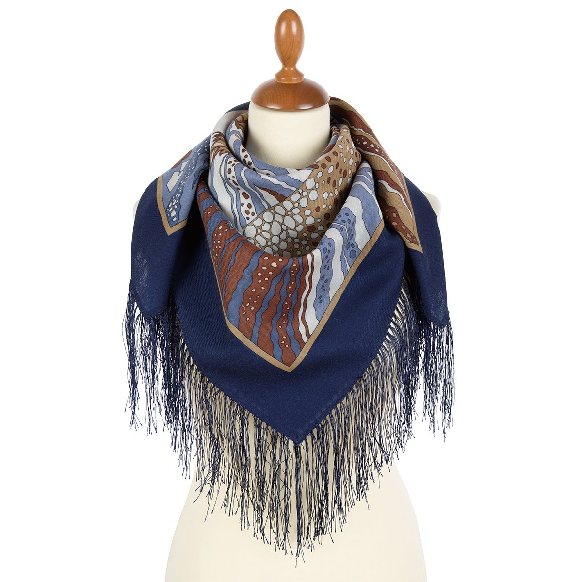 903-14 Кайма платка синяя. Рисунок построен на сочетании оттенков синего и коричневого цветов.