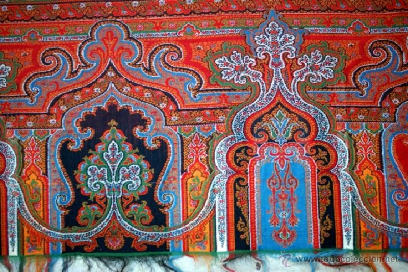 Дамы, все это я к чему веду – думается мне, что прародителем Испанского, который сейчас выпускается самыми разными производителями методом набойки, возможно, был вот такой кашемировый mantones de ocho puntas с вытканным рисунком, привезенный откуда-нибудь из Индии или с Ближнего Востока.