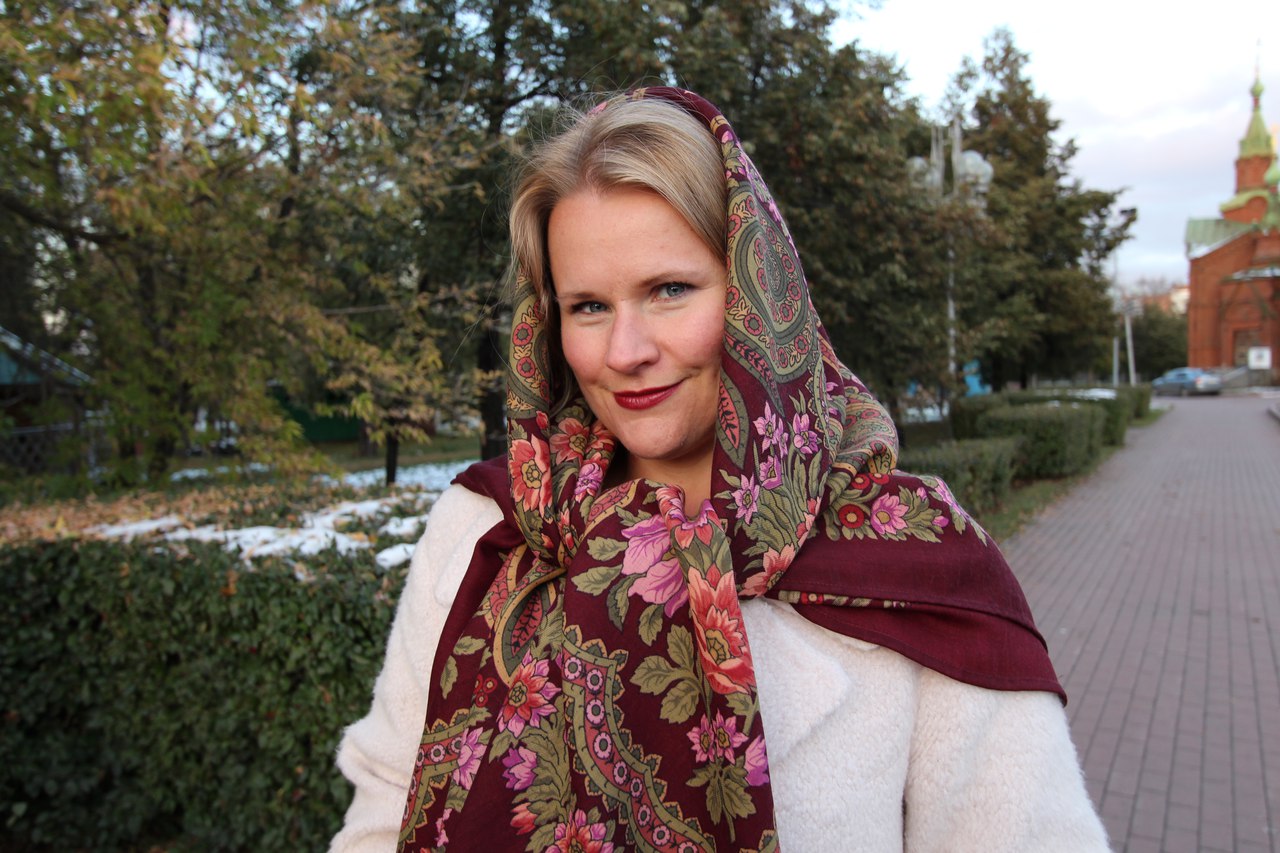 Демонстрируем ношение платков и шалей.