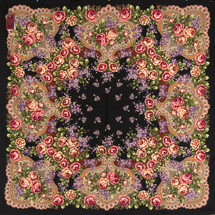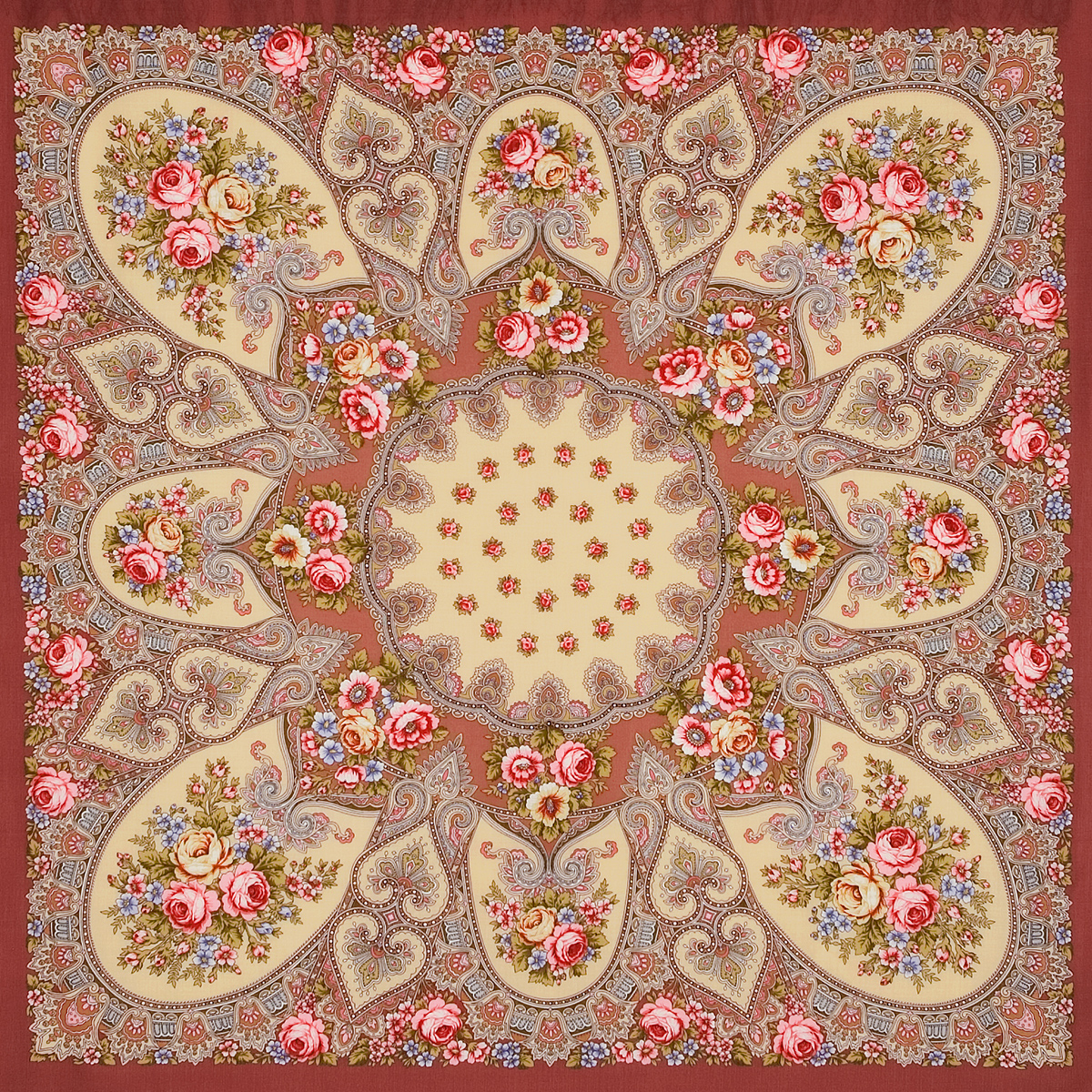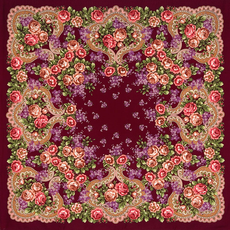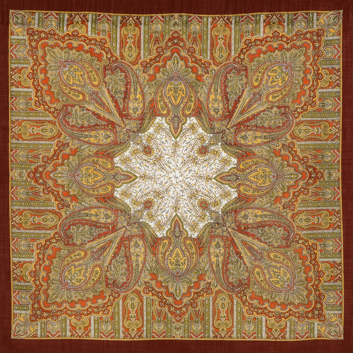 Шерстяной платок 146х146, напечатанный на ткани с просновками
