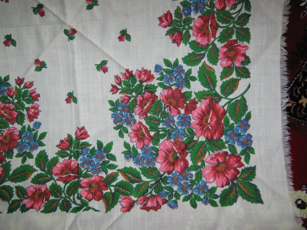 Я вот тоже хочу выставить платок на опознание. Произведен ориентировочно в 80-х годах. Очень знакомый рисунок, но не узнала до конца. ;)