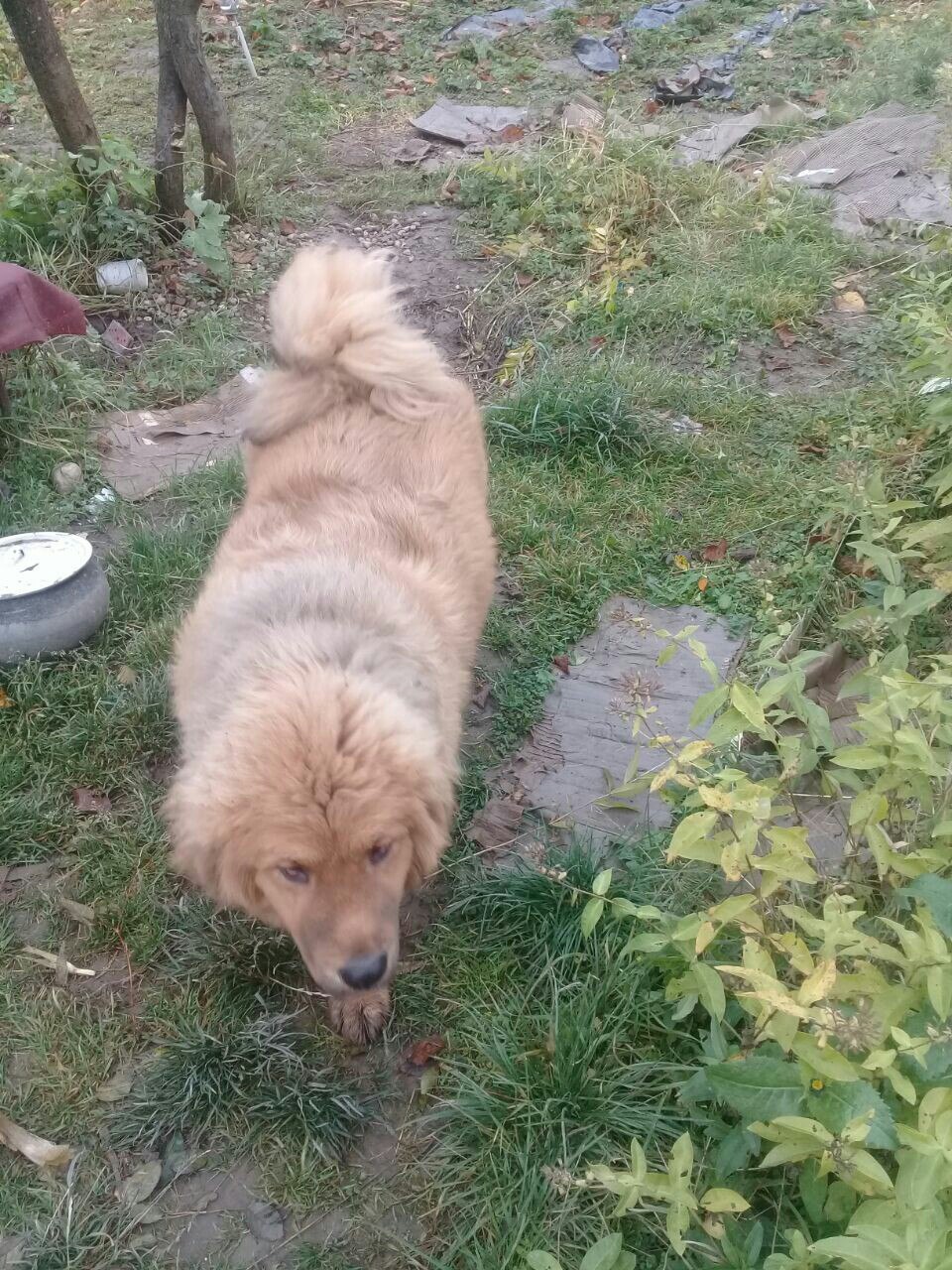 Бывшая полудохлая собака, ребра больше не торчат.