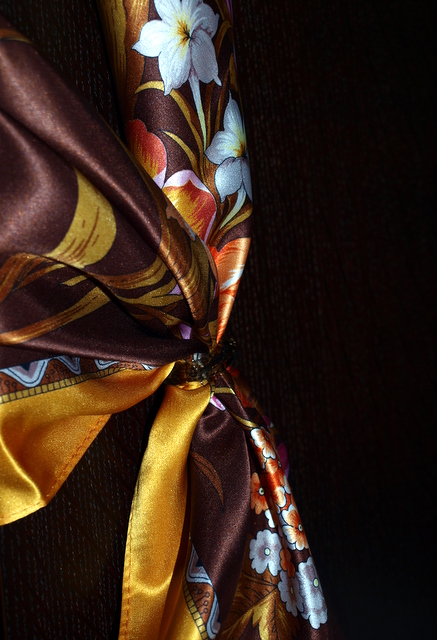 Кольцо понравилось своей нейтральностью и универсальностью. На шелковых платках "теплых" расцветок будет выглядеть хорошо, мне кажется, и не будет привлекать внимание. Острых краев нет, за платок не цепляется. Держит хорошо.