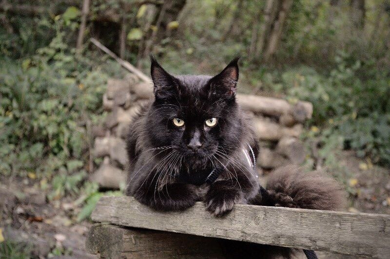 А это дедушка котенка, папа мамыЧистокровный мейкун, редкого черного окраса.