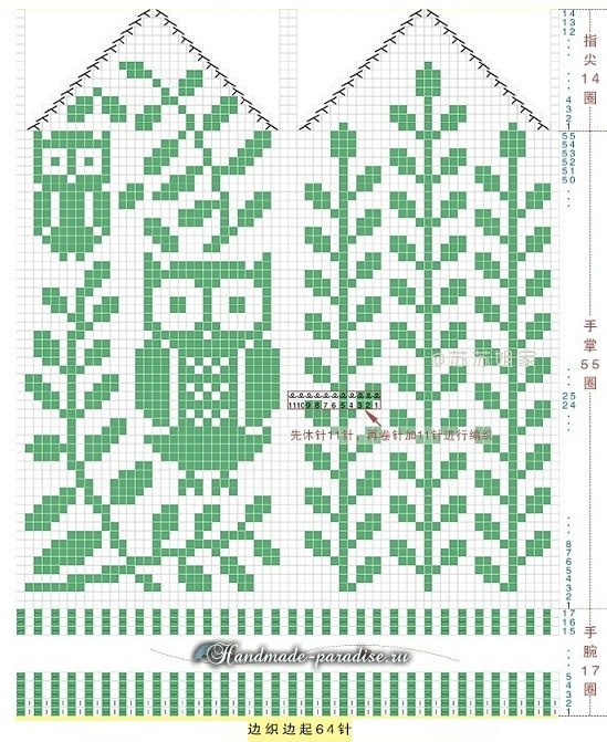 Схему распечатала, посчитала петельки, нормально должны совы "сесть" на мою руку. Но пока не до рукавичек.
