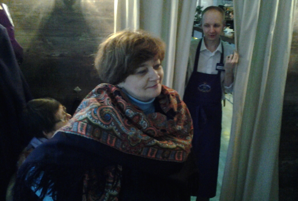 Вообще эта проблема встречаться в кафе, на себе испытала косые взгляды мч-гардеробщика, мы людям у зеркала не давали ни одеться, ни раздеться. Вошедшие гости ничего не понимали, куда они попали)) Шали, шали, взмахи, махи, щебетанье "юных дев". А мы ж как в раж войдем, так ничего и никого не видим, все о своем, о насущном. Есть мысль, может не кафе в следующий раз, а бальный зал с зеркалами надо арендовать?)