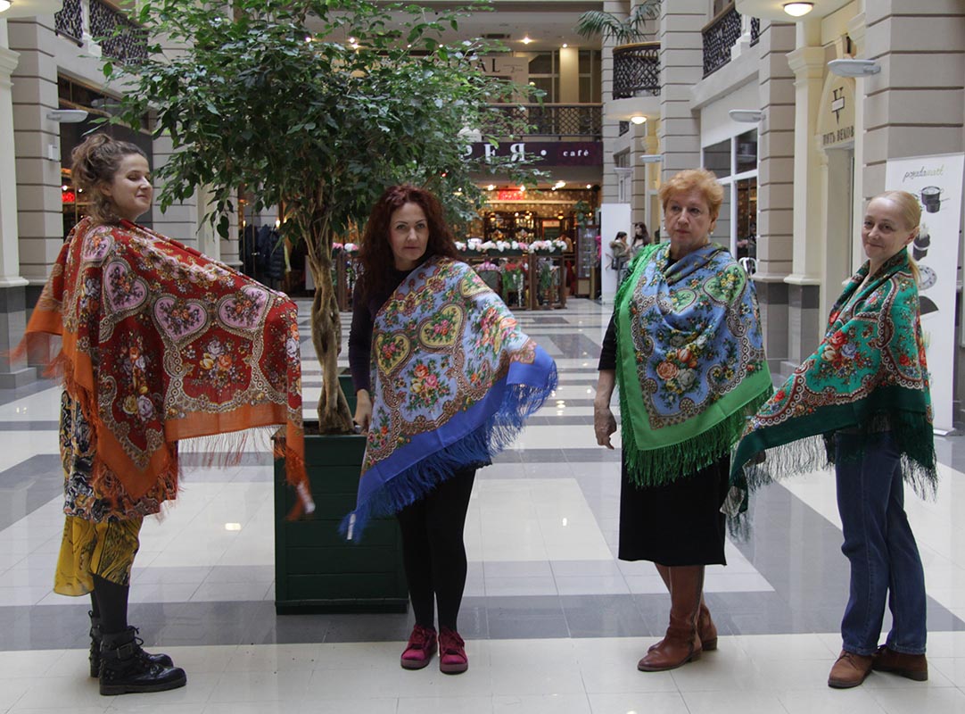 Ванесса, совершенно неожиданно зеленый платок 146 Торжество лета, хотя зеленое не совсем мое, и по картинке он мне не нравился, и не смотрела я в его сторону, но на себя накинула, и все. У нас платков с зеленым холодным цветом на данный момент в продаже и нет, был Караван 30, Праздник Покрова зеленый, наверное и все. Этот платок тот самый редкий случай с холодным зеленым, плюс к этому очень люблю сочетание зеленого с синим, что мы тут и имеем, а какие милые мелкие завитки на серединке, глаз не оторвать, и розовый спокойный, подсвечивает темную зелень платка и освежает лицо, все что надо. Мил невозможно, рисунок не давит, хорош.