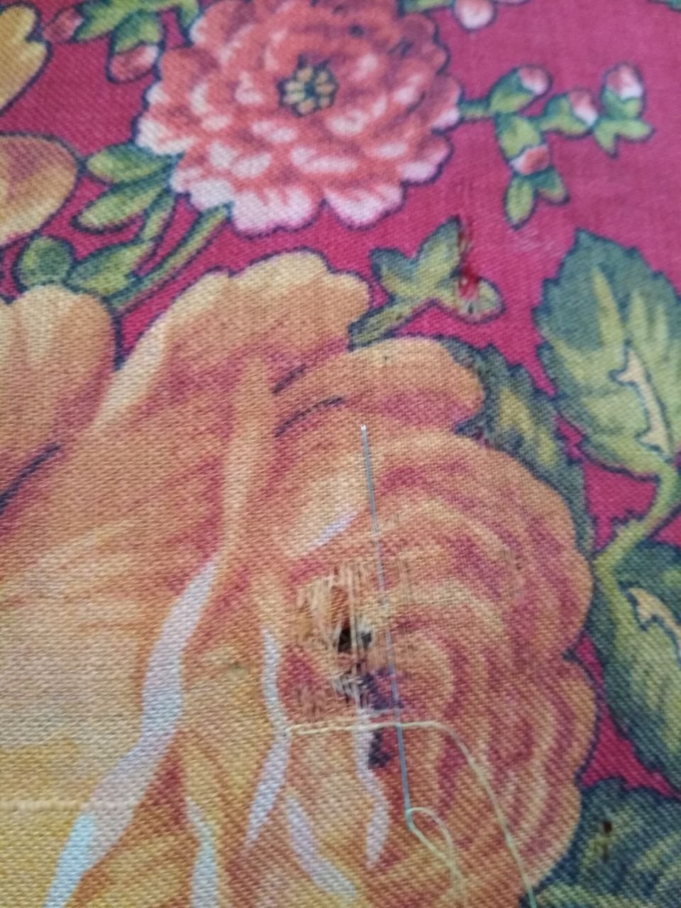Дырочек, потёртостей и прочих дефектов на ткани было много... не считала.... просто целенаправленно штопала замеченное...