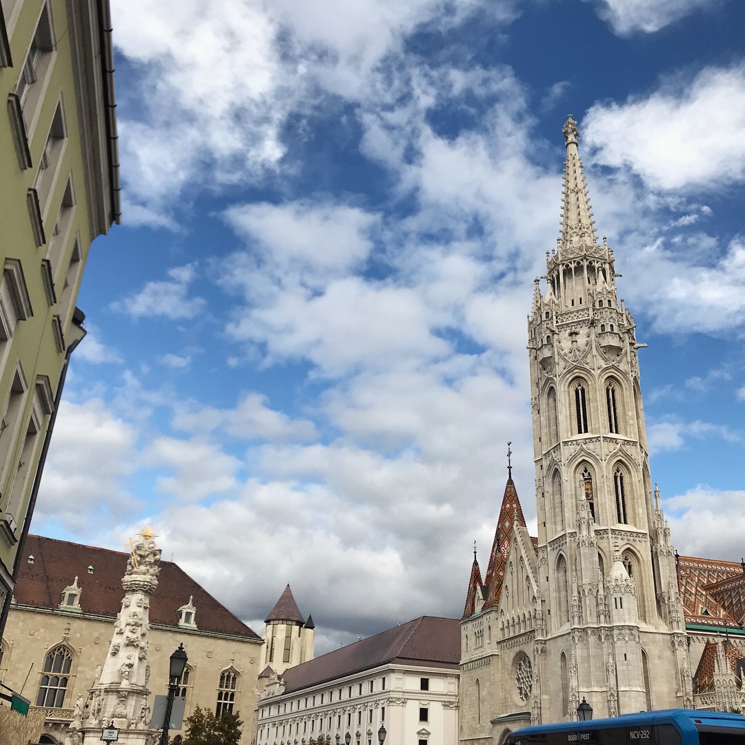 И мы беззаботные и счастливые на фоне Буды, Дуная и трамвайных путей