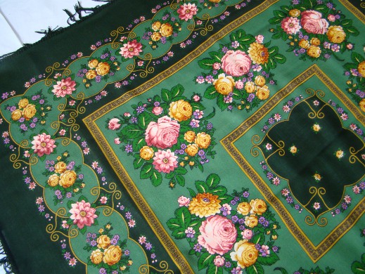 ЛЕБЕДУШКА Н.Слащевой, лоскут, активно носится женой брата с начала 80-х годов. Изначально фон у нее - словно в горчицу налили много молока. На фото выглядит гораздо светлее. Современные горчично-сливочные шали - Рябинушка и Русский Узор - другого оттенка. Несмотря на многочисленные стирки ( вручную, мягким мылом), цвета Лебедушки практически не изменились.