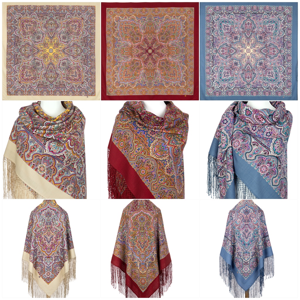 Схожи по гамме, но разные по темпераменту. Снежинки и цветы - для меня это бурная весна, во всей своей красе. (Особо полюбилась в этом платке серединка- ну просто поднос из цветов!)