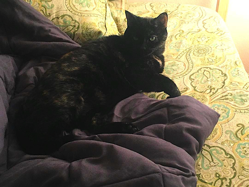 В декабре Маве исполнилось 10 лет. Она черная с палево-рыжеватыми пятнами, хотя на фото это плохо видно. Очень ласковая - но любит только мою дочку. Величавая, может быть своенравной и строптивой. Порой обидчивая... Хозяйка. Королева