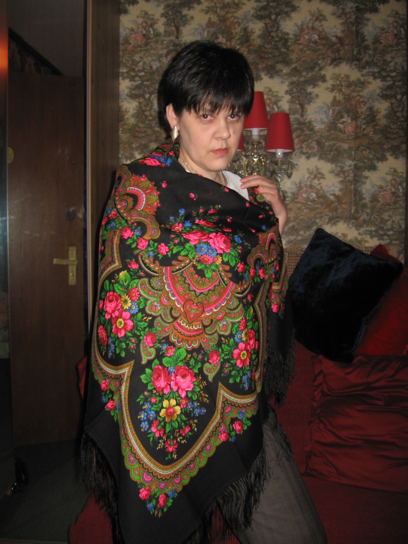 Зинаида! Вы экспрессивная, творческая натура! Мне видится,что Вы можете носить эту шаль самым смелым образом- например как на рекламных фотографиях Мануфактуры: с джинсами, завязав платок на талии. В Вашем исполнении должно быть очень эффектно! ^%