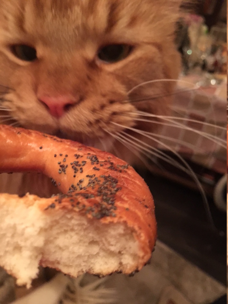 И никак я не ожидала, что эта рыжая морда поведет себя невоспитанно, ну, ладно еще попрошайничать, но чтобы в мой бублик вцепиться зубами и тащить его на себя, пытаясь откусить побольше, это уже верх наглости. Гонорар за съемку требовал.