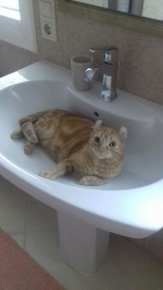 Люба, дверь в ванну открыта не всегда...Он не только в раковине, но и в самой ванне порой полёживает. Знает, нахалёнок, что неотразим и ему многое разрешается.