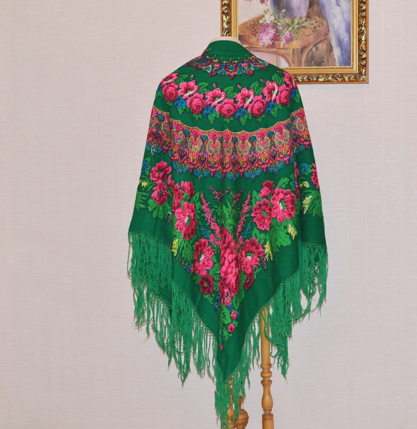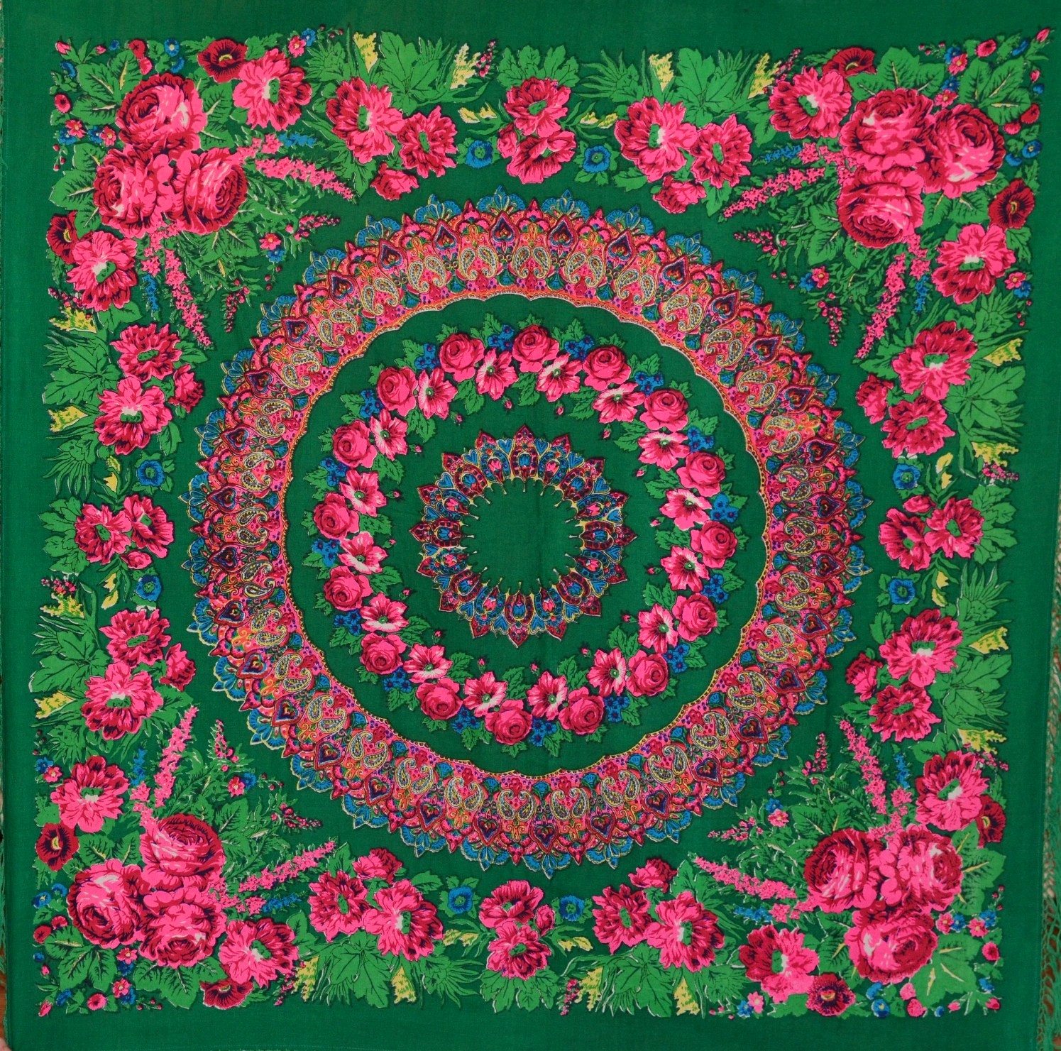Нил Постигов, похоже, что оригинальная ручная набойка. Шаль уплотненная, 150 см на 150 см.